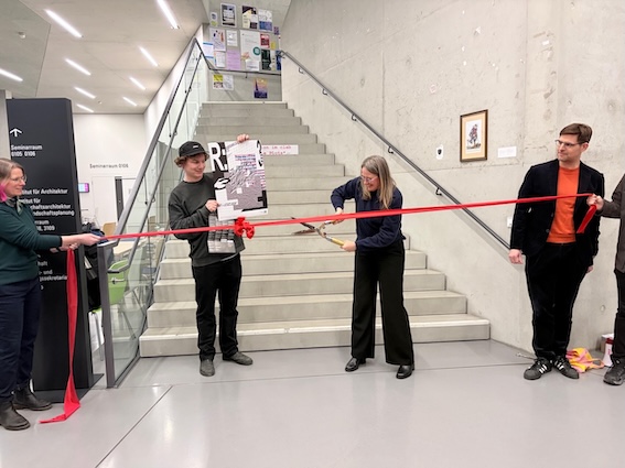 Weiter Highlight waren der Neujahrsempfang mit Verleihung der Preise der Cook Bruns Stiftung und Pfeiffer Stiftung, der Podiumsdiskussion mit der Vizepräsidentin der Architektenkammer Hessen Gaby Schmücker-Winkelmann, Matthias Schäpers von der DGNB und Tim Driedger von Architects for Future und zum Abschluss die Buchpräsentation mit spannenden Neuerscheinungen aus dem Fachbereich ASL, die Führung durch die Ausstellung im Zukunftswalk und die Performance von Ivana Rohr.